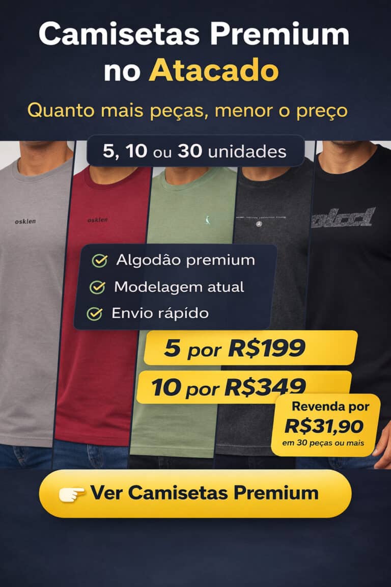 Leve 5 por R$199 ou 10 por R$349. Escolha suas camisetas preferidas abaixo: