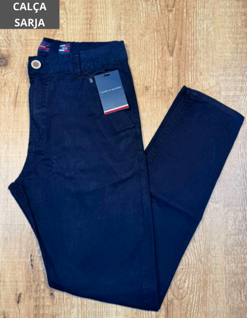 Perfeita para compor looks casuais ou sociais, a calça sarja é uma peça curinga no guarda-roupa masculino, unindo estilo e praticidade em todas as combinações.