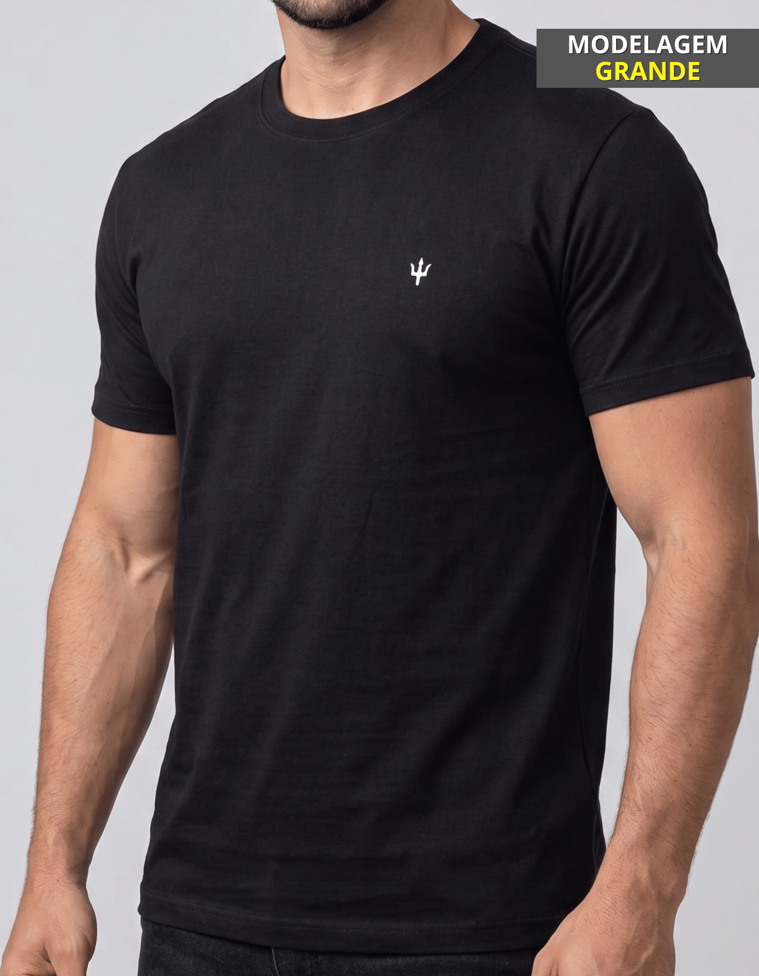 As camisetas marcadas como “MODELAGEM GRANDE” possuem modelagem ampliada: