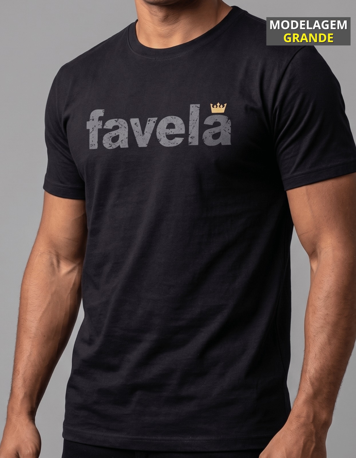 As camisetas marcadas como “MODELAGEM GRANDE” possuem modelagem ampliada: