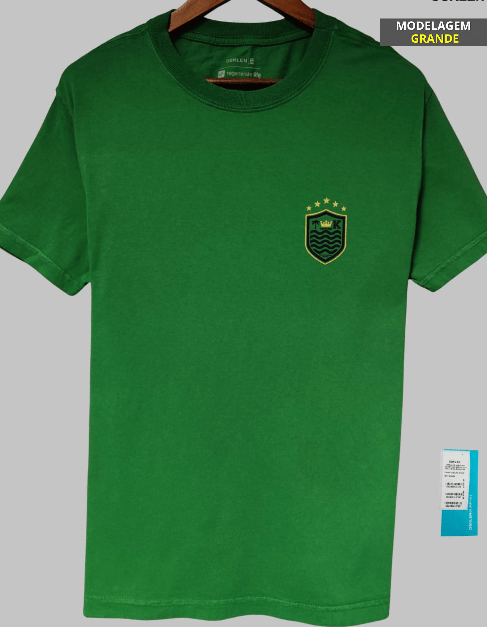 As camisetas marcadas como “MODELAGEM GRANDE” possuem modelagem ampliada: