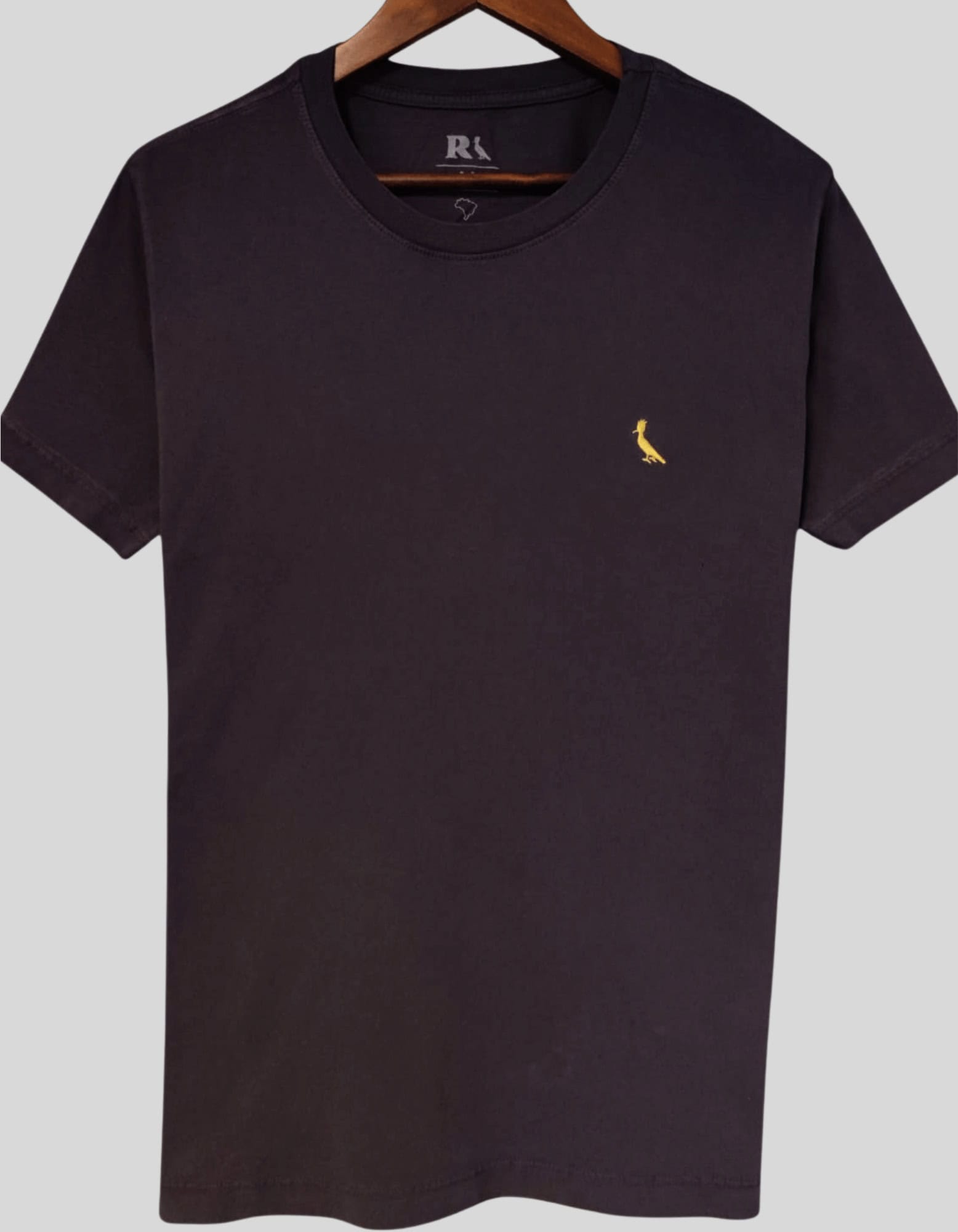 - Gola com largura fina e costura reforçada ombro a ombro