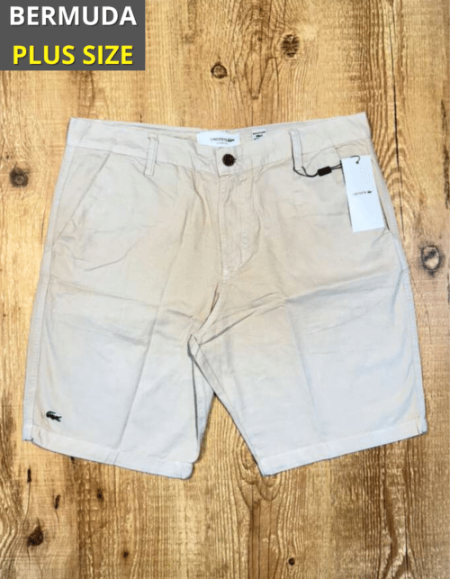 Bermuda masculina Plus Size, confeccionada em sarja de alta qualidade, com algodão e elastano, garantindo conforto e liberdade de movimento. O modelo possui características inspiradas na alfaiataria, como bolso faca na parte frontal e bolsos embutidos na parte traseira, proporcionando um visual moderno e sofisticado.