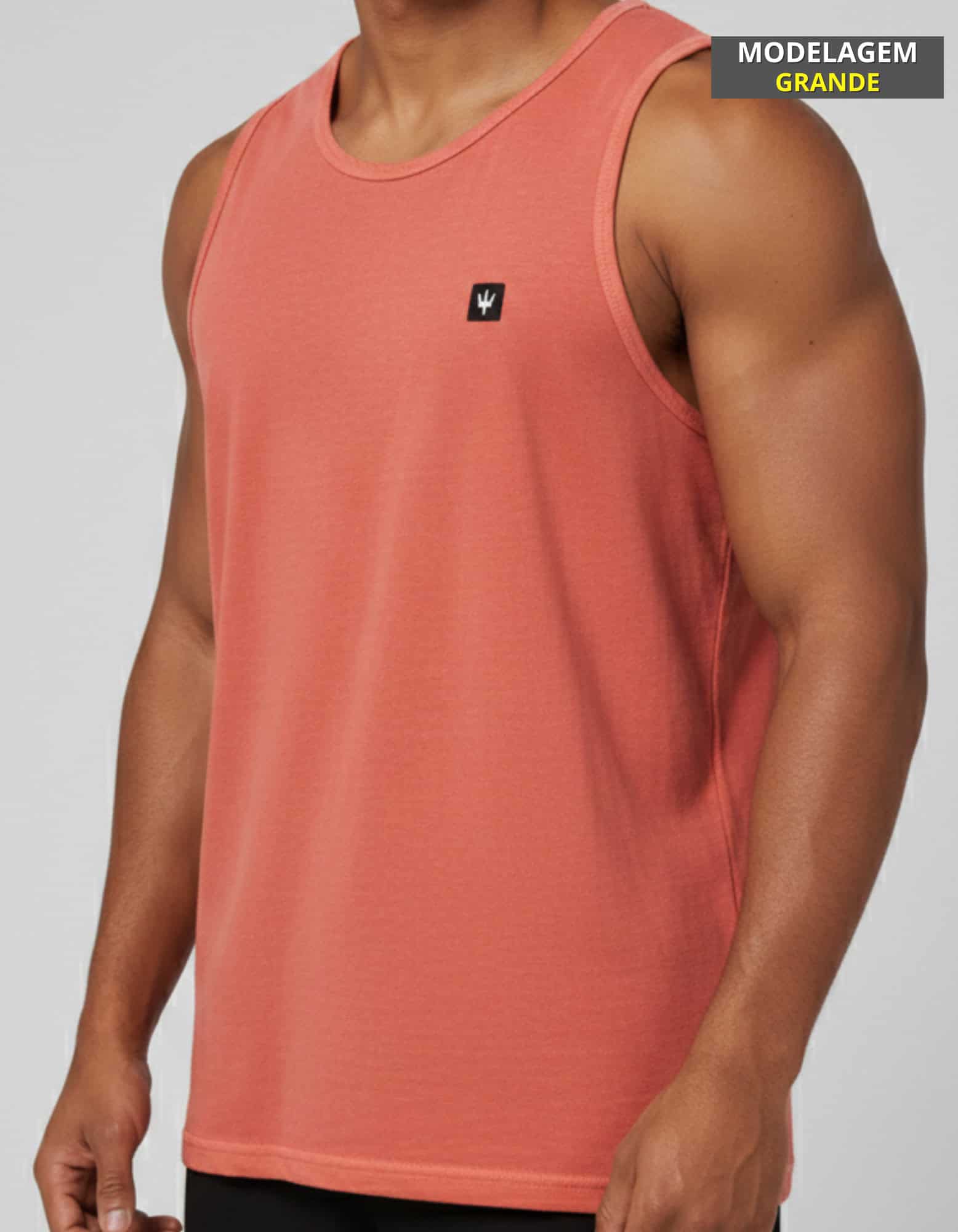 - Gola com largura fina e costura reforçada ombro a ombro